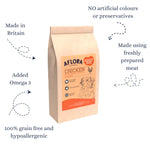 Balanced Nutrition with Added Botanicals: Along with fresh chicken and vegetables, Aflora incorporates a carefully selected range of botanicals to support overall health. Ingredients such as linseed, a rich source of fibre and Omega 3, and salmon oil, known for its heart and joint health benefits, contribute to a balanced diet. The result is a dog food that promotes strong bones, joint health, and healthy digestion, as well as boosting the immune system and cognitive function.