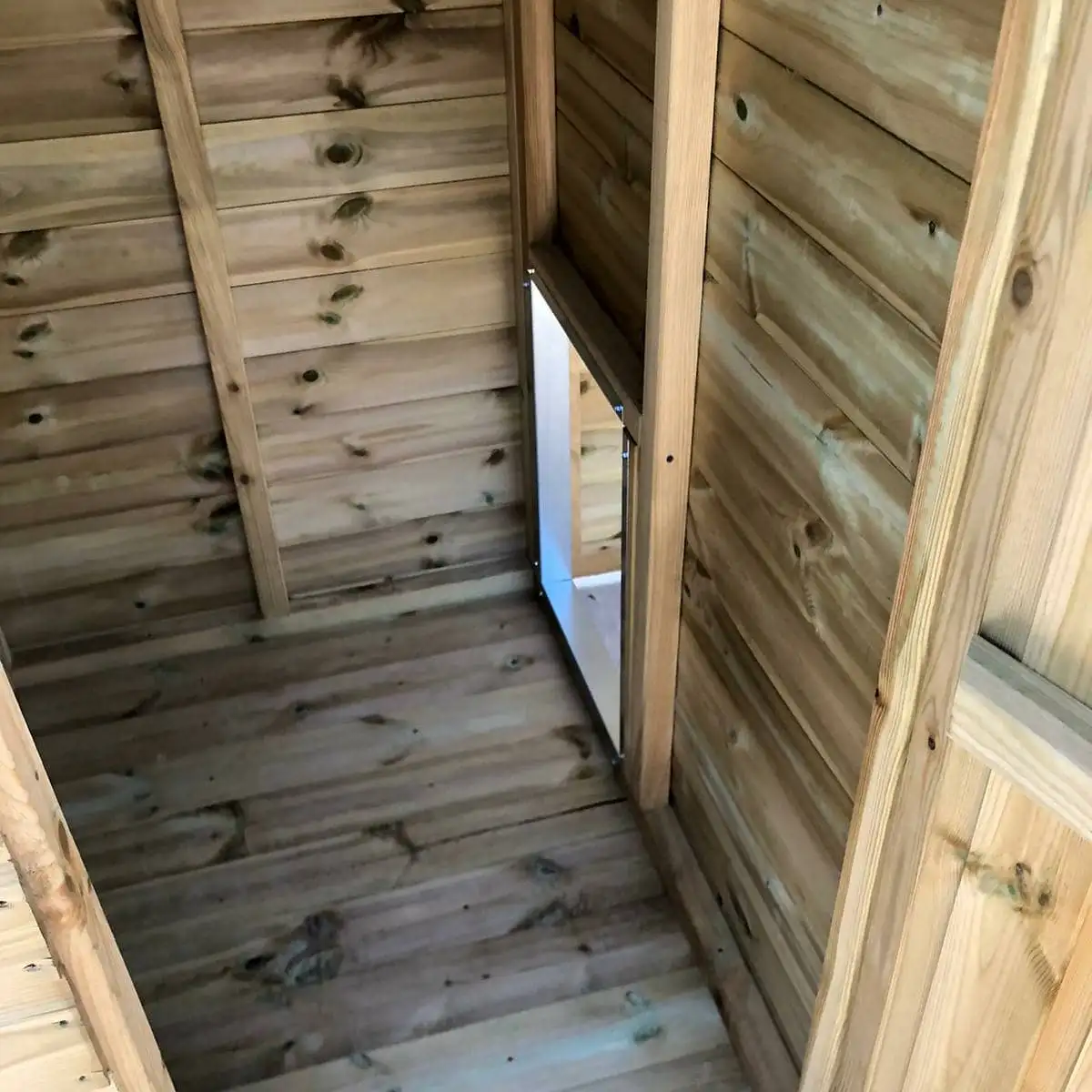 • Built on a 45 x 45mm frame tongue and groove pressure treated floor.