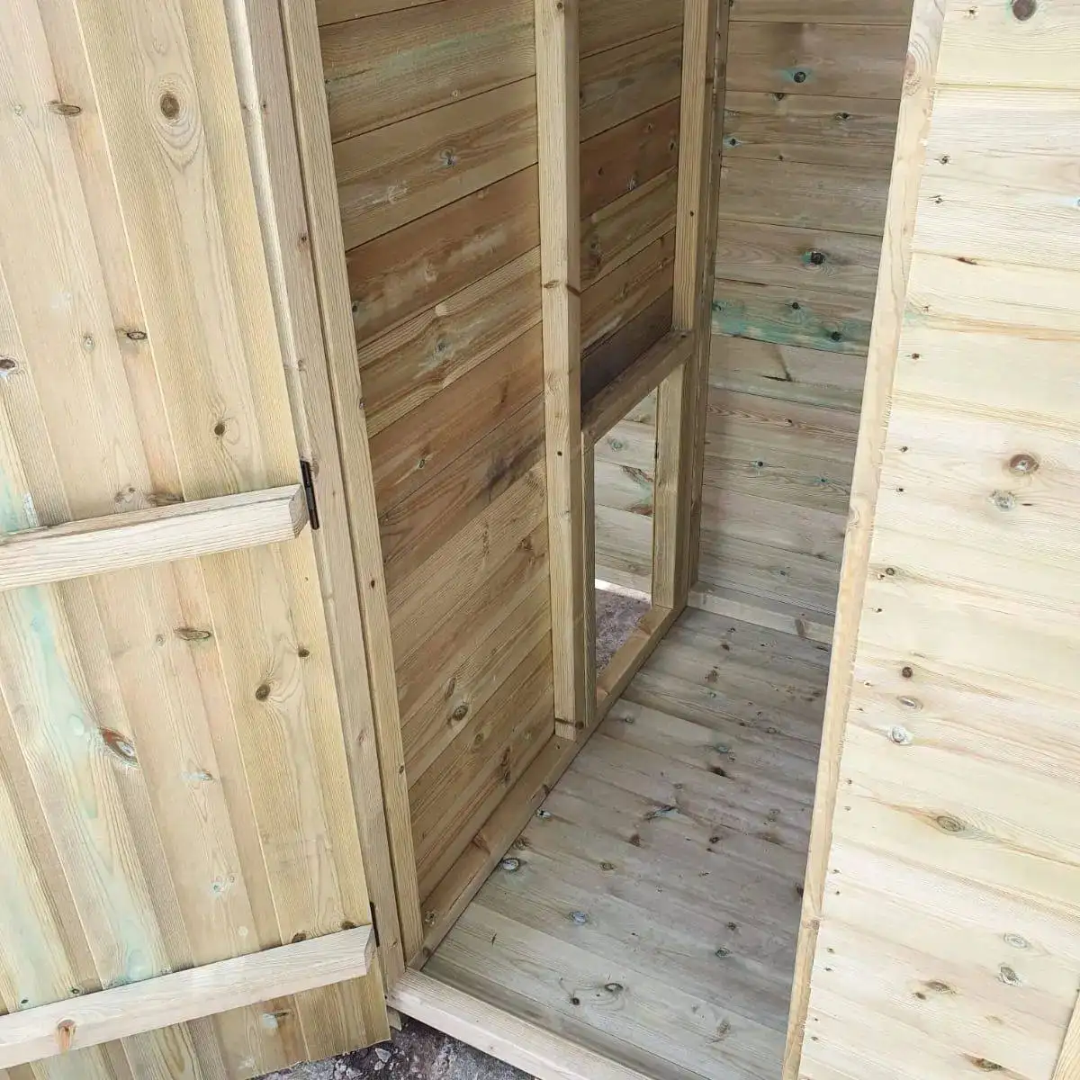 • Built on a 45 x 45mm frame tongue and groove pressure treated floor.
