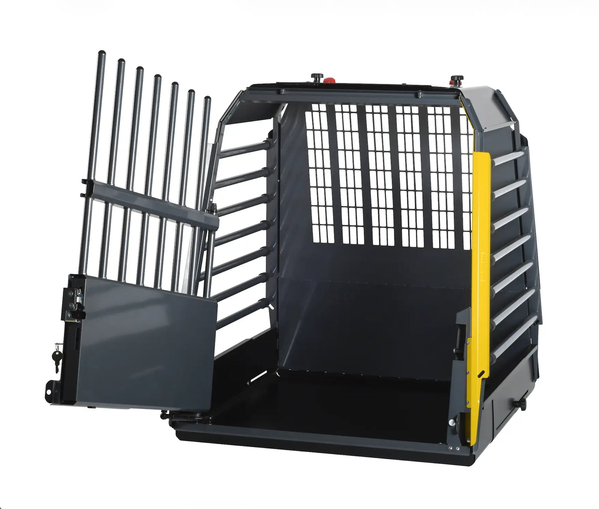 For the traffic-awareness dog owner who wants the safest dog cage/crate for vehicle transport, we offer VarioCage. Crash tested at SP, Technical Research Institute of Sweden in Borås with the test method SPCT, Safe Pet Crate Test. In an accident VarioCage is compressed in a controlled way along the vehicles crumple zone, protecting both pet and passengers from an increased risk of injury. The cage/crate is equipped with an evacuation hatch if the doors are blocked in an accident.