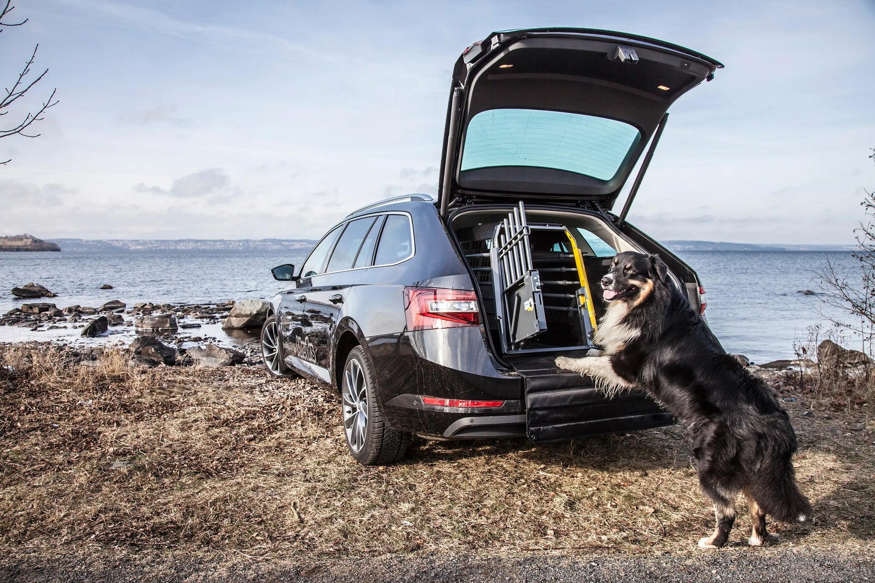 A safe and very practical dog cage or dog crate, which also leaves room for other luggage. Easily adjustable to fit the depth of your luggage space. If you only have one dog to secure and want to be able to use the rest of the load compartment for your luggage, select a VarioCage original single model.