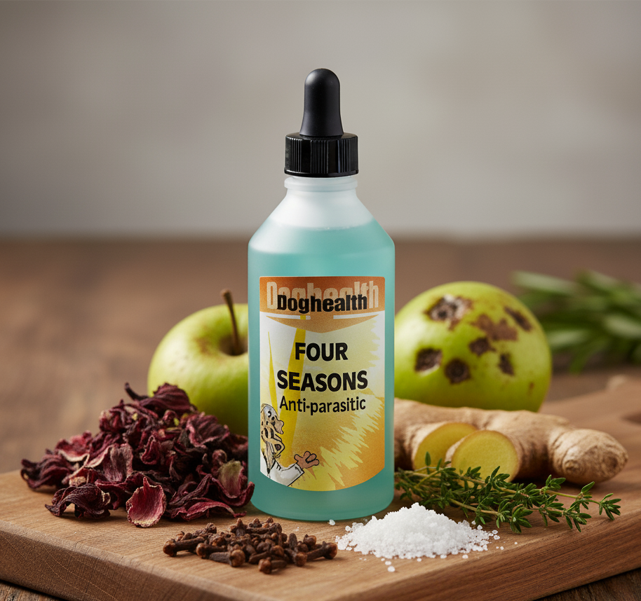 Made with organic cider vinegar and herbal extracts, Four Seasons is safe for puppies, pregnant dogs, and multi-pet households — protecting without upsetting gut flora.