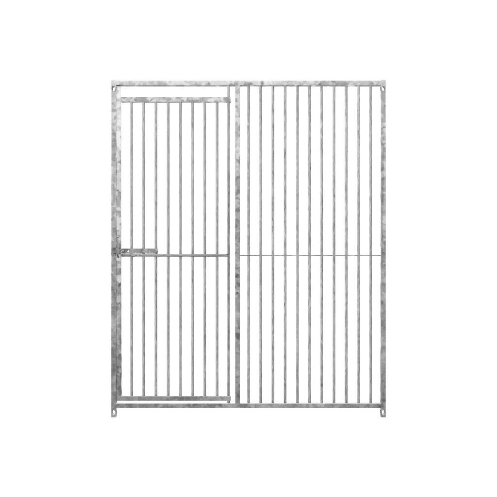 Our 5cm Solid Bar Door Panels are the ultimate solution for securely containing dogs, offering unmatched strength and durability. These fully modular panels come in various widths and can be easily joined to create any desired length, providing the flexibility to fit any space. The doors are installed by insetting them into the frame and can open up to 110°, complete with a lift latch and a hole for a padlock to enhance security.