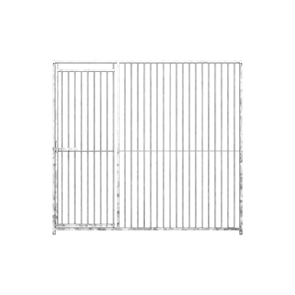 Our 5cm Solid Bar Door Panels are the ultimate solution for securely containing dogs, offering unmatched strength and durability. These fully modular panels come in various widths and can be easily joined to create any desired length, providing the flexibility to fit any space. The doors are installed by insetting them into the frame and can open up to 110°, complete with a lift latch and a hole for a padlock to enhance security.