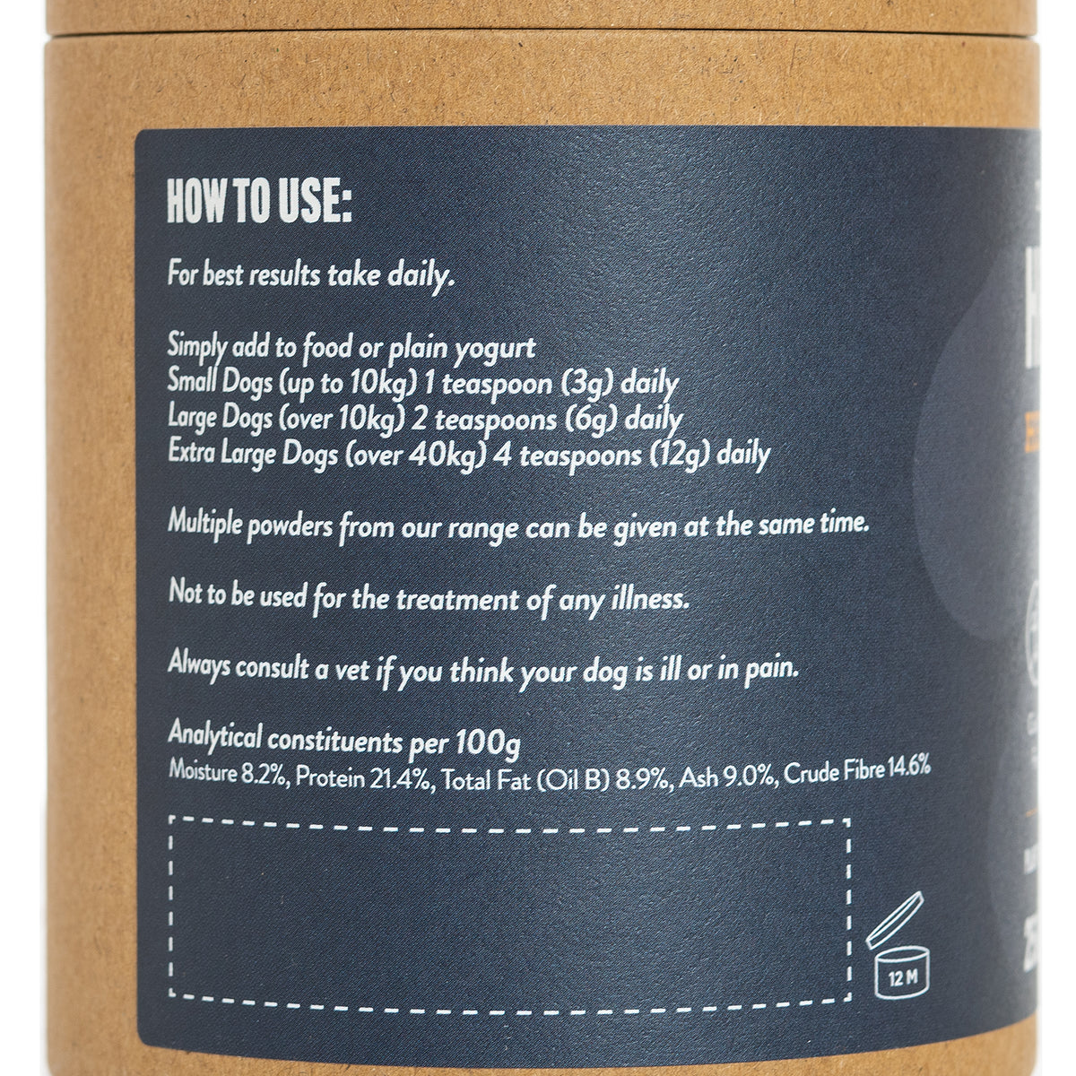 The immune system is vital to keeping your dog feeling healthy & happy. Specially formulated with a powerful blend of natural herbal ingredients by the caring people here at Herbal Dog Co, this blend, when taken once daily with food or yogurt, will help support your dog’s natural immune system to function & help them thrive. Using only the freshest of ingredients, this is a great mixture which can be used in combination with all our other powders for a great addition to your dogs general health, all without the need for nasty chemicals!
