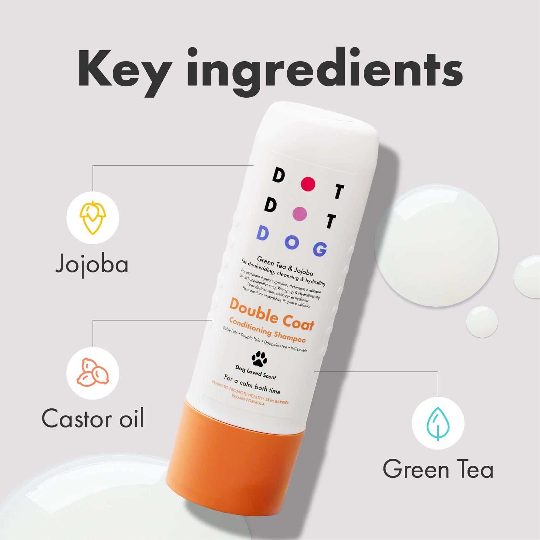 Easy to use no drip 280ml bottle Say goodbye to excessive shedding and lingering odours—and hello to a clean, healthy, and luscious coat. DotDotPet’s Deshedding Double Coat Conditioning Shampoo is specially formulated for dogs with thicker, double-layered coats. Designed to gently remove loose, dead hair while nourishing the skin, this shampoo makes bath time easier and less stressful, turning grooming into a calm and enjoyable experience for both you and your dog.