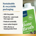 The UK’s first 100% natural, cupboard-friendly liquid Lamb Bone Broth for dogs and cats. Made from welfare lamb carcasses and meaty lamb bones, this soothing, collagen and mineral-rich supplement supports your pet’s joints, digestion, skin, and overall wellbeing. Each batch is slow-cooked with a splash of apple cider vinegar to draw out essential nutrients, minerals, and collagen — with absolutely no additives, hormones, or antibiotics.